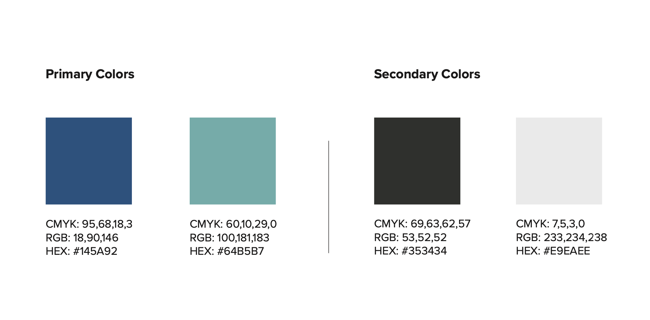 The color palette is included in the Branding Guide and the HEX colors are all set up on the Squarespace backend.